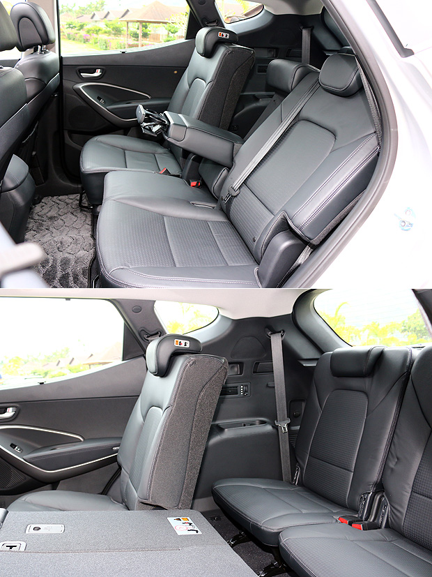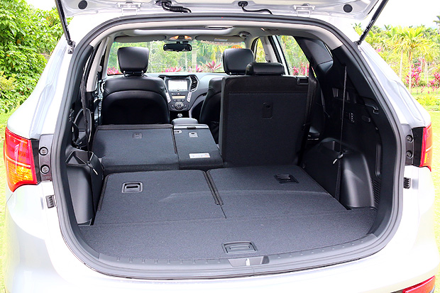同時,在三排滿載的情況下,Santa Fe也還有35公分深、136.5公分寬與77.5公分高的行李廂空間。當需要更多至務需求時,能夠傾倒收折的第三排與第二排座椅,可已分別讓行李廂深度擴充達104公分,最多甚至可以達到196公分的最大行李廂深度,足以應付各種日常生活常見的物品。不過,由於Santa Fe仍屬於高底盤的SUV車款,行李廂開口的距地高度達到78公分之譜,對於身行較為嬌小的消費而言,放置物品時可能會有些許吃力。