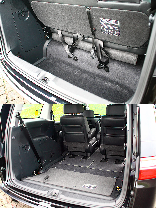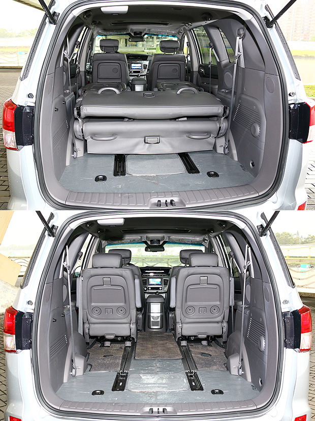 行李廂採取下凹式的設計,但第三排座椅收折後便填滿行李箱底板,而第二排座椅也無法全數收折。