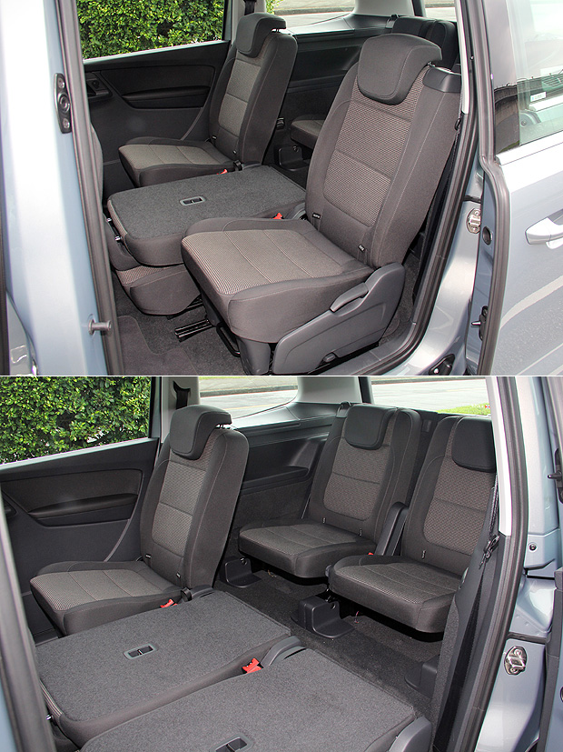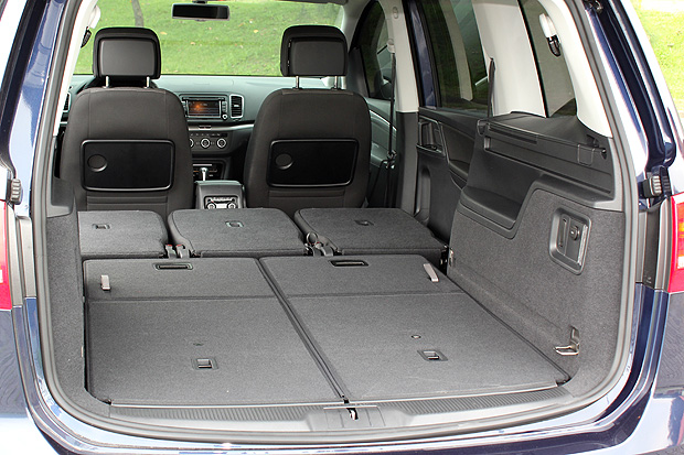 行李廂的空間表現上,Sharan與同樣身為中型MPV的Luxgen M7 Turbo相去不遠,即使是三排座椅豎直,依然能夠提供49公分深、109公分寬與113公分高的行李廂空間。將第三排座椅傾倒後,則能將深度加大至120公分的水準,若是連帶將第二排座椅一併收折,便能達到213公分之譜。同時,Sharan的後座座椅除了全數獨立外,也皆能完全收折,換句話說,當第二與第三排座椅全數傾倒後,所能換取的便是全然平整的行李廂空間,增添更多的使用便利性。
