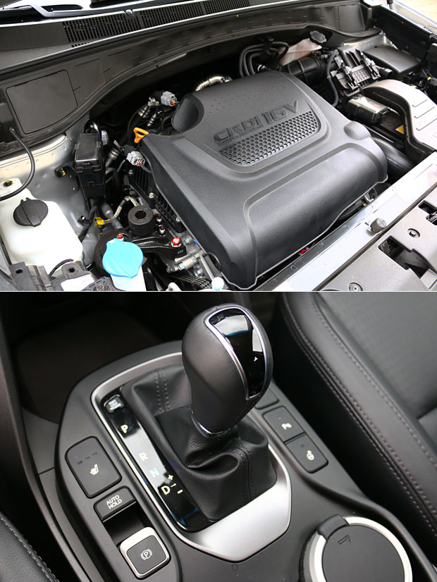Santa Fe搭載直列四缸柴油引擎,具備197ps/3800rpm最大馬力與44.5kgm/1800-2500rpm峰值扭力,搭配上六速手自排變速系統。