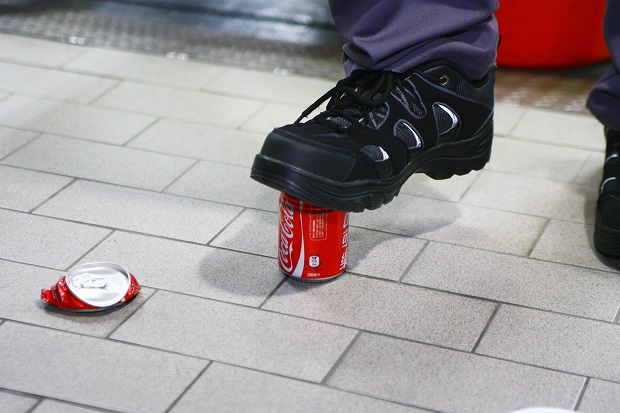 現場以飲料鋁罐做一個簡單示範,當鋁罐完整時,一個人直直站上去其實是不太能夠壓垮鋁罐,但當鋁罐周圍有丁點摺痕時,便輕易就能夠被踩扁,由此可知當車禍撞擊後,若僅就原本的鋁鈑件維修使用,將可能影響結構安全性。