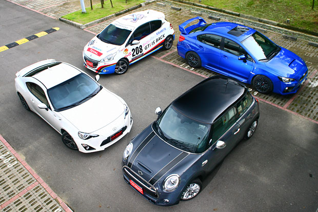 此次四位主角分別為Mini Cooper S、Peugeot 208 GTi、Subaru WRX STI、Toyota 86。