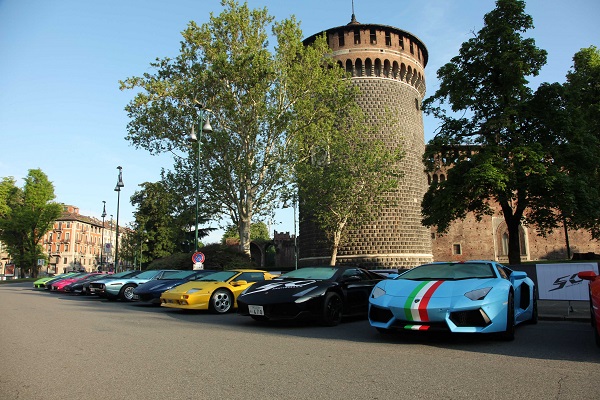 Lamborghini 50週年慶典遊行於當地時間5月8日上午10點從米蘭卡斯特羅廣場(Piazza Castello)正式啟航。