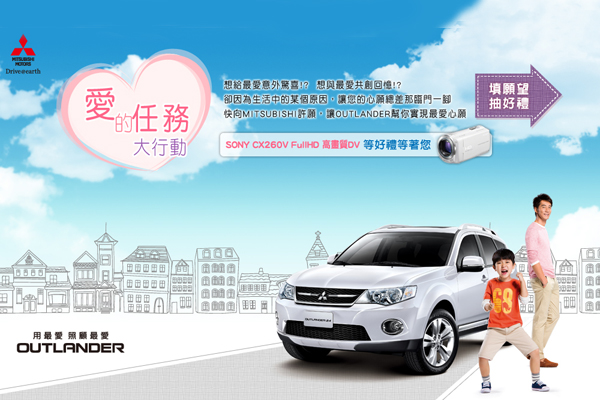 為讓「用最愛照顧最愛」主張更有行動力,Mitsubishi於今年初舉辦「Outlander 愛的任務大行動」,三週時間收到超過千件網友心願,網站瀏覽人次已破萬!