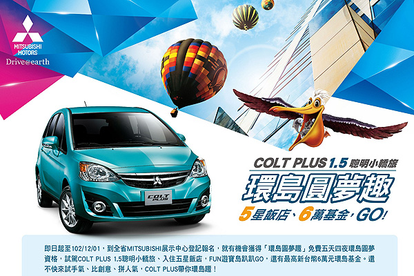 Colt Plus上市以來銷售表現亮眼,為回饋消費者Mitsubishi推出「Colt Plus環島圓夢趣」活動,你環島Mitsubishi買單。